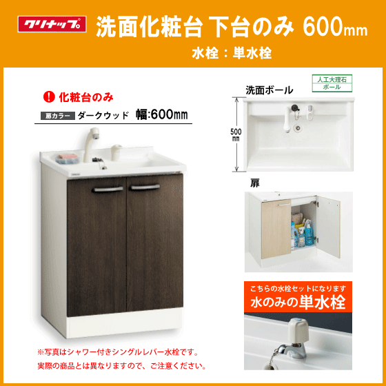- 洗面化粧台 下台のみ(ミラー部なし) 単水栓 幅:600mm BGAL60TNTEW クリナップ BGAシリーズ