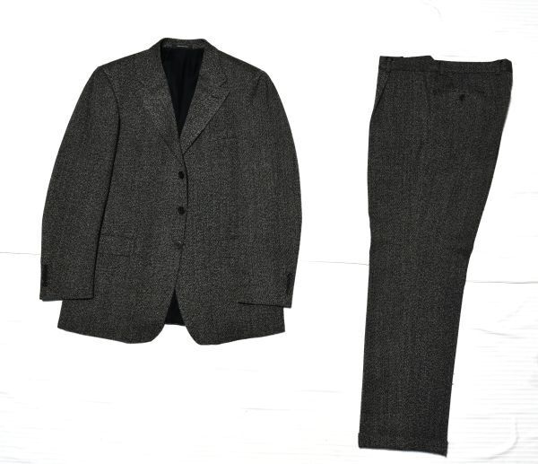 > ★VERSACE★ベルサーチ★スイス製★ 都会的センスある黒白系のグレー 肉厚のツイードジャケット&パンツ お洒落な高級スーツ 56・LL以上