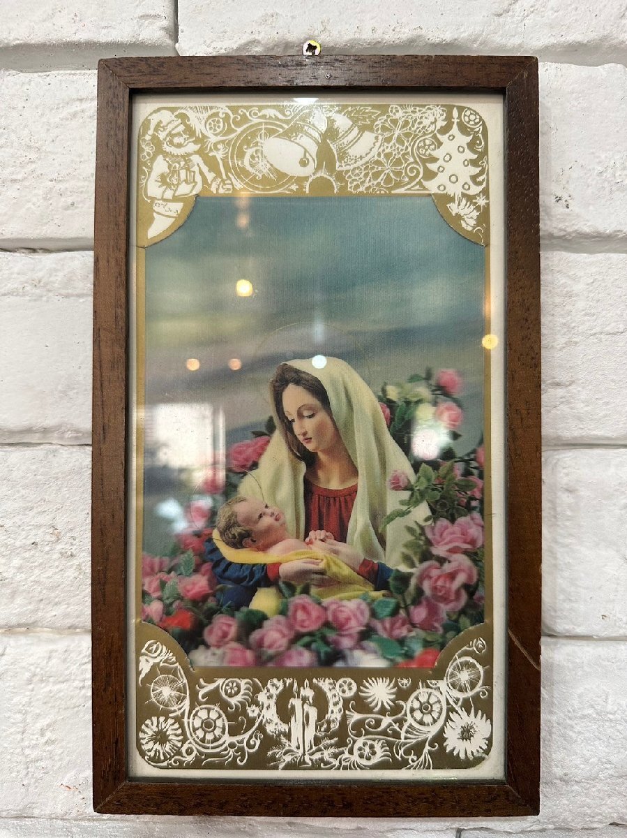 - 4519 オランダ アンティーク 絵画 立体絵 オブジェ インダストリアル カントリー 生母マリア 1980年代 高さ23cm 幅23cm 奥行き1.5cm bbb