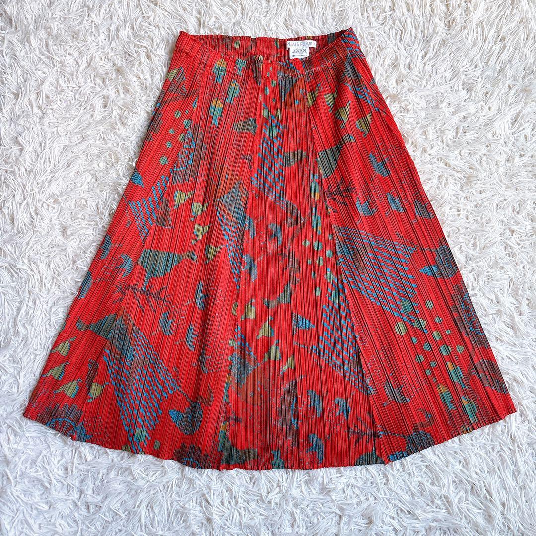 - PLEATS PLEASE ISSEY MIYAKE プリーツプリーズ イッセイミヤケ 総柄スカート 魚柄 ウエストゴム レッド オレンジ 希少