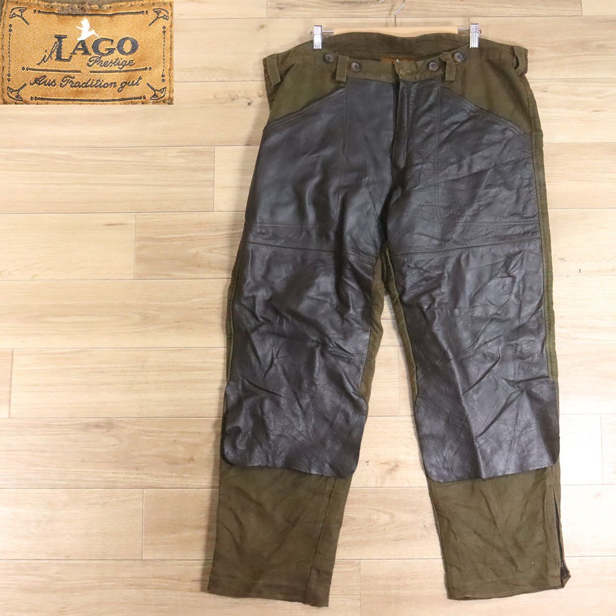 > ?15T/Y6.20-1 70s~ ビンテージ ユーロ Lago Prestige レザー切り替え ハンティングパンツ 本革 58 ワークパンツ ヴィンテージ