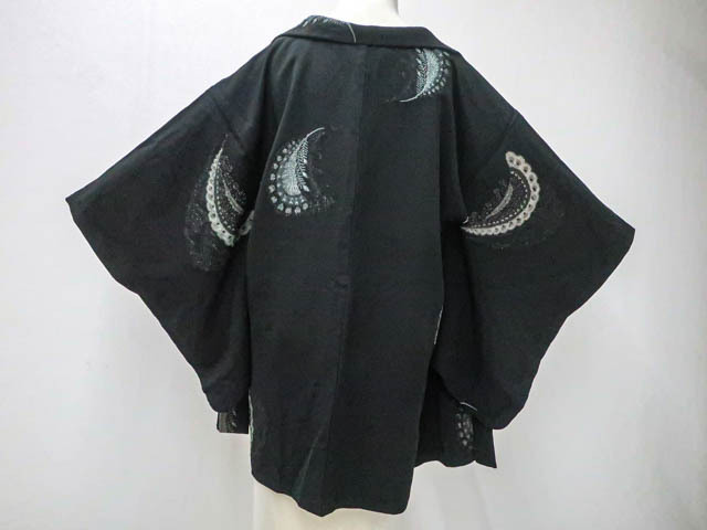 > 《古美術京松》リサイクル着物 黒羽織 アンティーク 縫取 羽織紐付 正絹 身丈約82cm 裄丈61.5cm kyo7z08-892