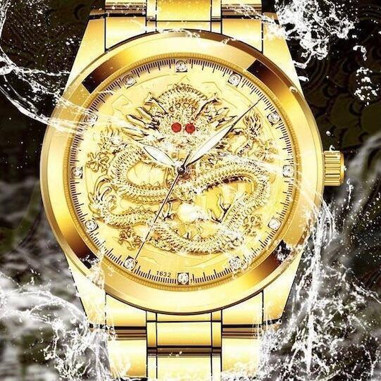 - ドラゴンスタイル腕時計 ラグジュアリー腕時計 メンズ ゴールド×ゴールド