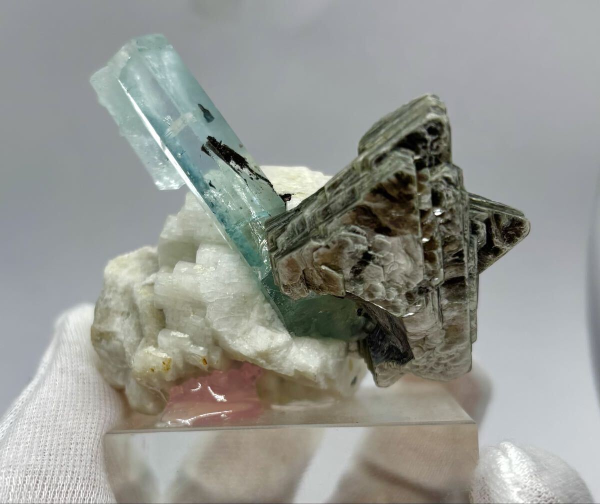 - 【最高品質】アクアマリン 雲母 パキスタン産 共生標本 宝石質 緑柱石 スターマイカ トルマリン 天然石 原石 鉱物 標本 No.51