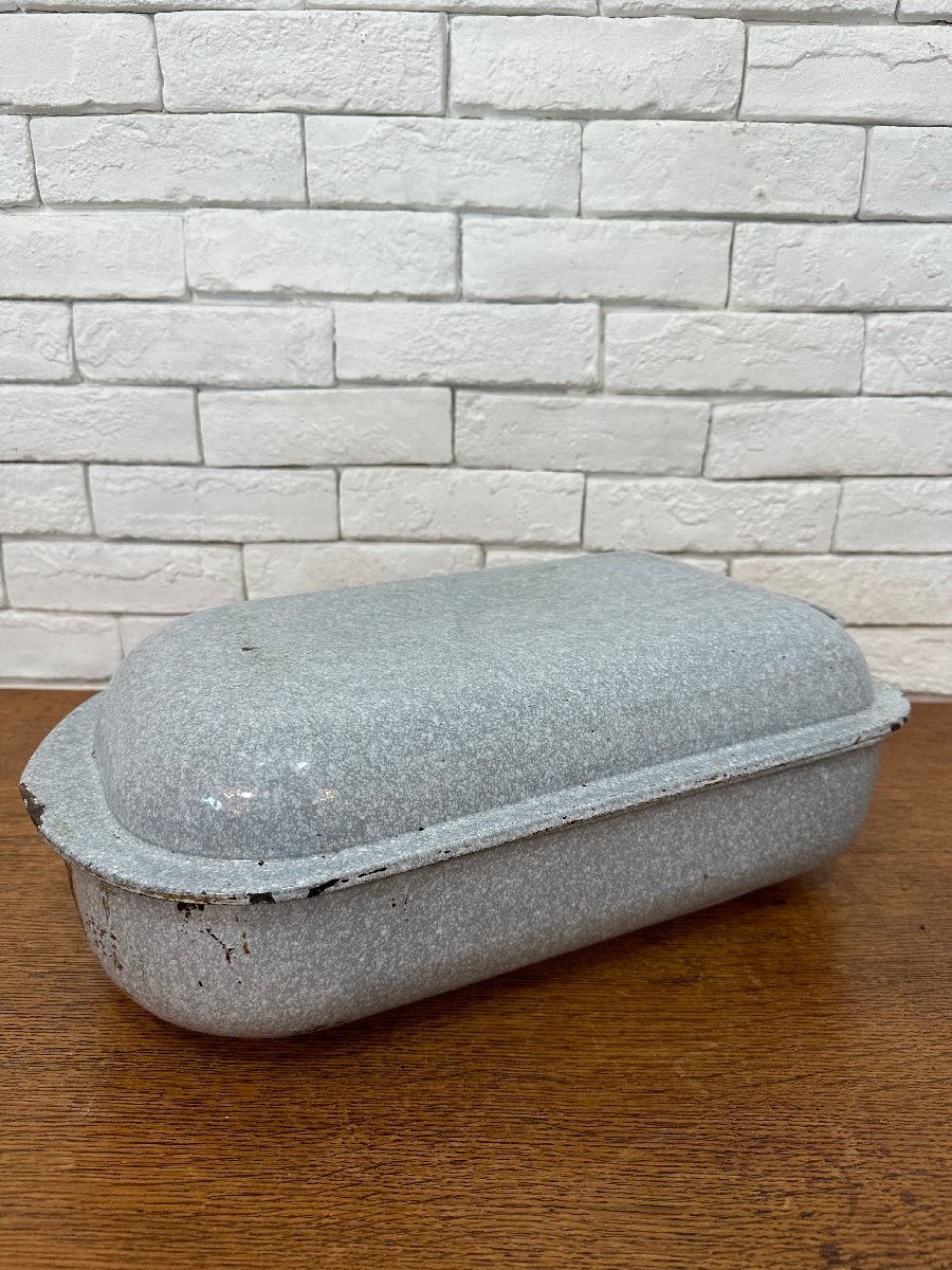 - 5000 ドイツ アンティーク ホーロー鍋 ガーデン オブジェ カントリー 1920年代 キッチン 蓋付き 高さ16cm 幅49cm 奥行き26cm bhh