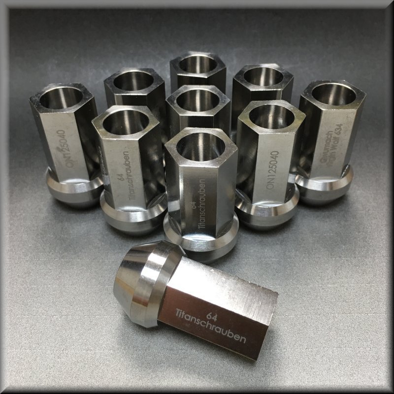 - 634produce 64チタン合金製 レーシングナット M12P1.5 全長40mm 有効ネジ約28mm HEX17 60度 貫通 M12x1.5 限定生産 軽量ホイール 20個