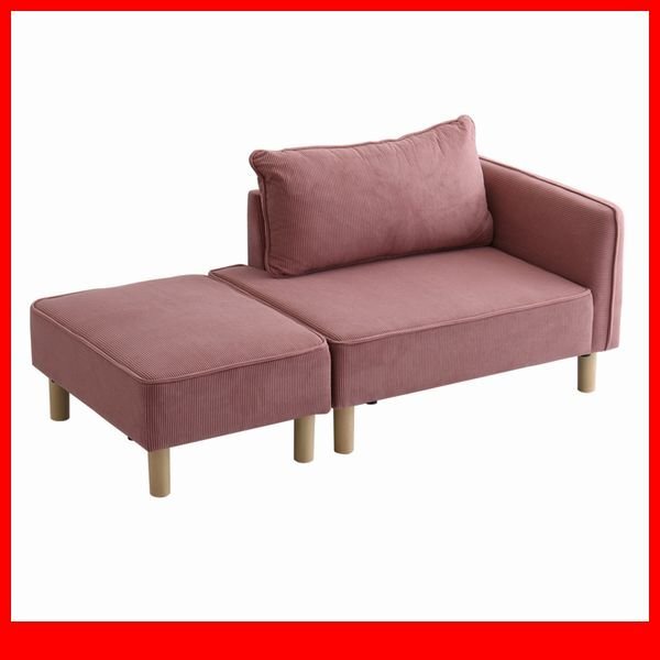 > ソファ★新品/コーデュロイ生地 コンパクトカウチソファ オットマン/脚を外してローソファ/ピンク/a4