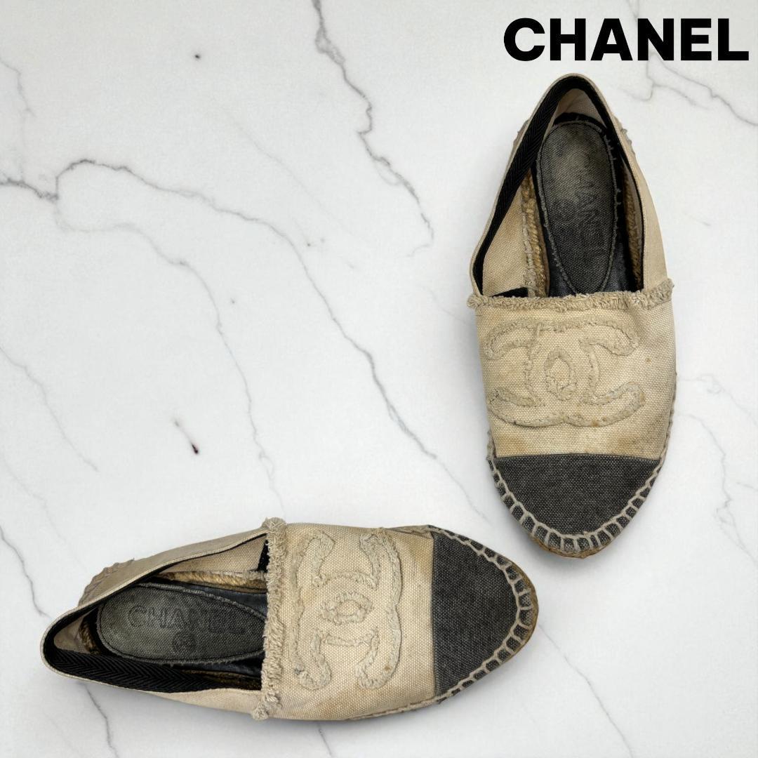 - CHANEL シャネル エスパドリーユ ココマーク キャンバス 38 25cm レディース