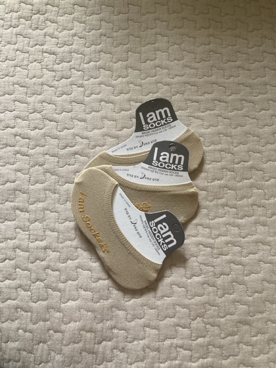 - 韓国 I am SOCKS ベージュ スニーカーパンプスソックス 3足セット 靴下 ショートソックス