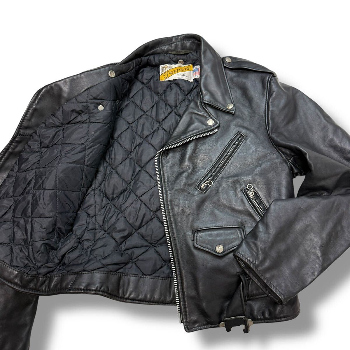> 1029 XL相当!!美品 Schott ショット ダブルライダースジャケット 革ジャン 618 レザー 牛革 キルティング 40 USA製 黒 ブラック