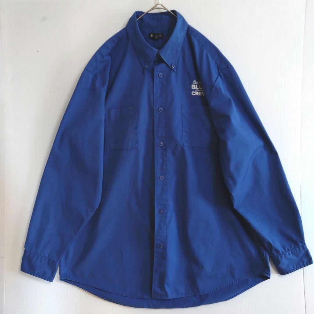 - 2526 BLUE 長袖ワークシャツ XL 青 刺繍ロゴ ビックサイズ US古着