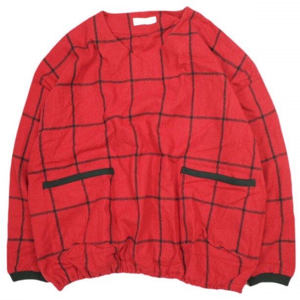 - rdv o globe ランデヴーオーグローブ ウィンドウペン オーバーサイズウールスモック 142SH005 3 RED 長袖 チェック プルオーバー シャツ