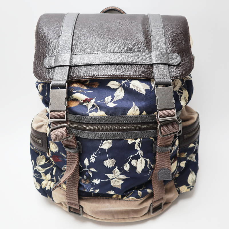 > DOLCE&GABBANA ドルチェ&ガッバーナ フラワー柄 キャンバス/レザ― バックパック リュック ネイビー/ベージュ/グレー S07-k028