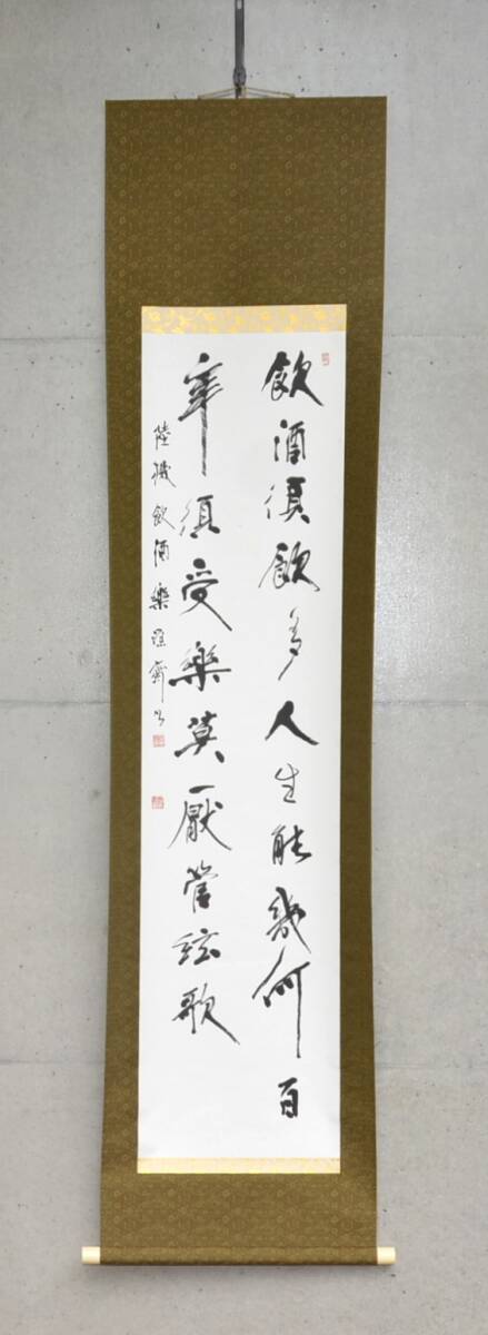 - 70◆初荷です ◆掛軸 書家 加茂源斎 二行書 陸機飲酒楽 真作 紙箱 ◆共箱