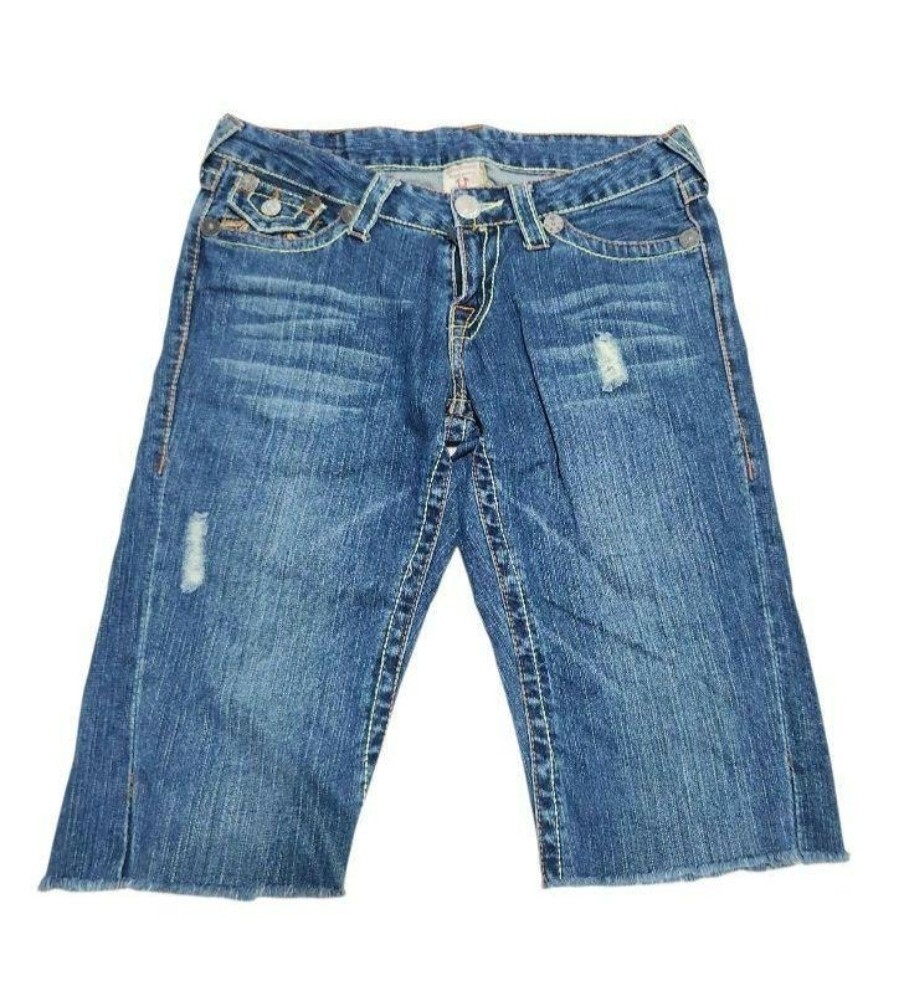 - TRUE RELIGION レディース JOEY レインボーステッチ カットオフデニムショーツ