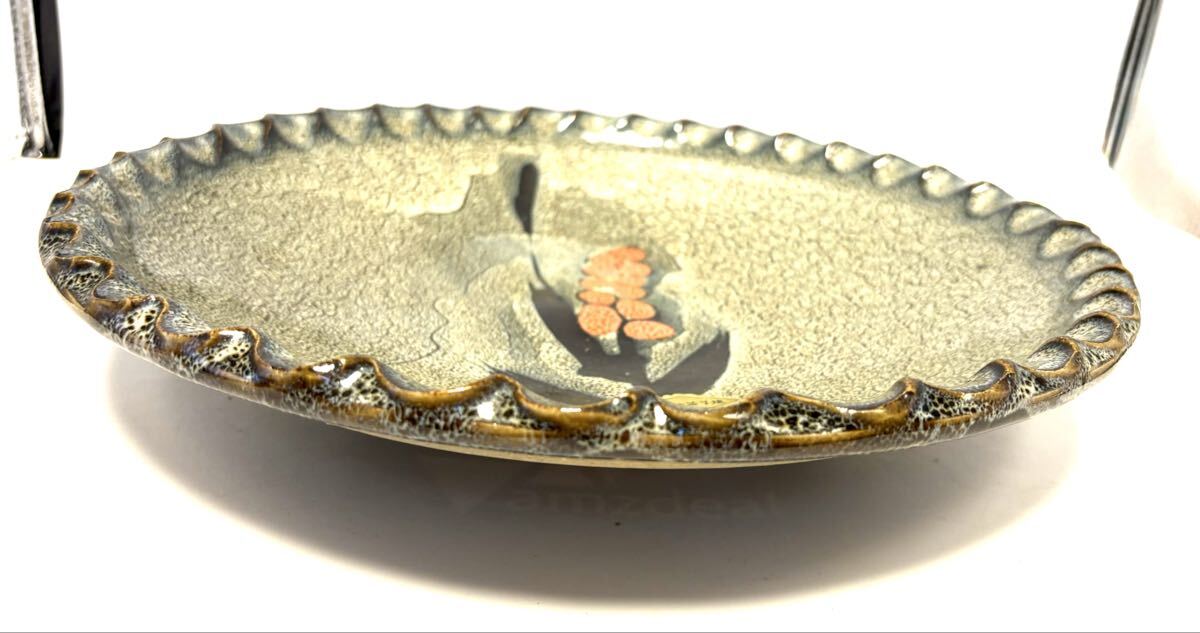- 陶器 大皿 益子焼き 未使用 箱付き