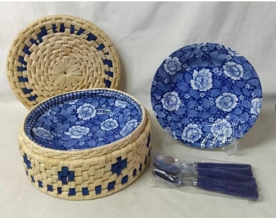 - プリンセスローズ カレー皿 スプーン 5客セット 籠入 レトロ パスタ皿 スープ 陶器 深皿 カゴ 未使用品
