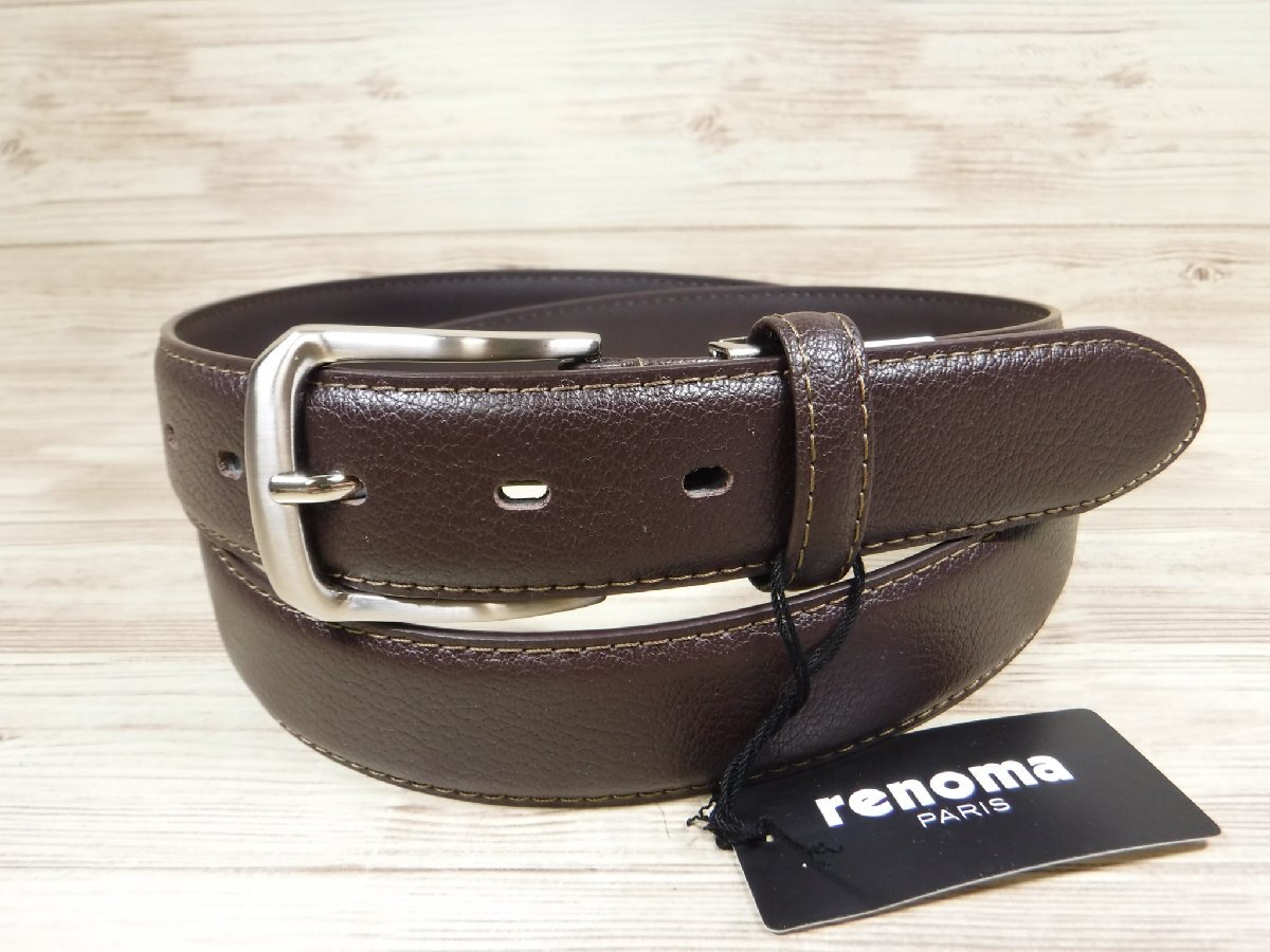 > V243 レノマ renoma PARIS 新品 35mm 幅広 ロングサイズ 牛革 レザーベルト XL 濃茶 チョコ ビジネスベルト カジュアル オンオフ兼用