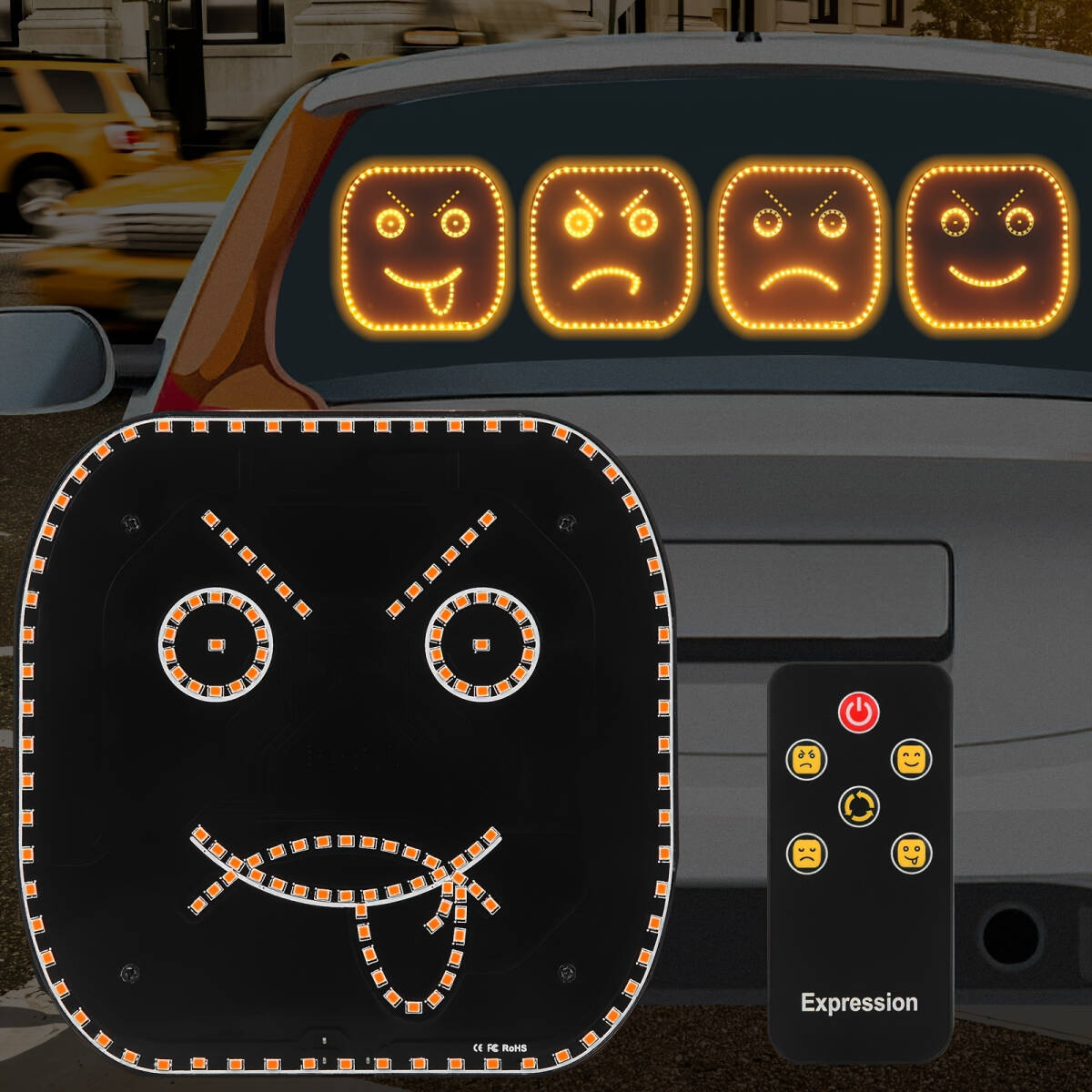 - 車用 LEDライト 笑顔 怒った顔 ニコニコ 補助ライト 13cm リモコン付き オレンジ 車内ライト 外装 デコ カーライト おしゃれ 電池式 t8901