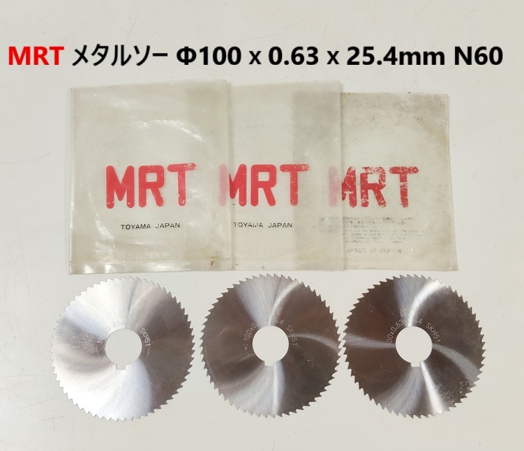 > ★MRT メタルスリッテイングソー Φ100x厚0.63x穴25.4mm 60刃 SKH51 サイドカッター 横フライス 3枚★未使用★送料無料