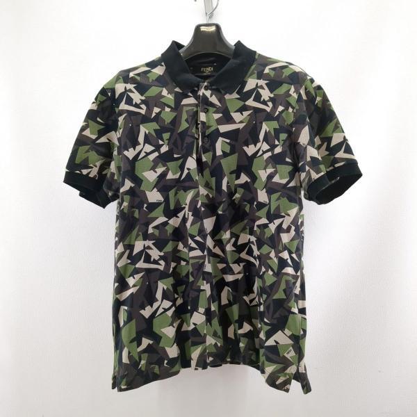 フェンディ ポロシャツ SIZE L カモフラ柄 グリーン メンズ 古着 FENDI 中古 ◆2015拍卖