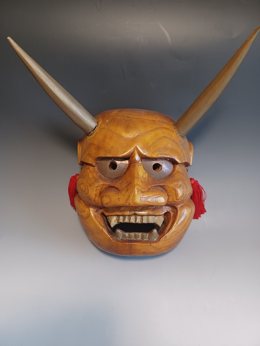 - No.20 コレクター放出品 般若面 お面 魔除け 木彫り 木彫り面 能面 神楽 細密彫刻 木工芸 箱なし 和風インテリア