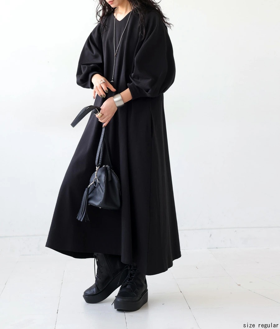 - [antiqua] [アンティカ] ボリューム袖 ワンピース レディース ロング