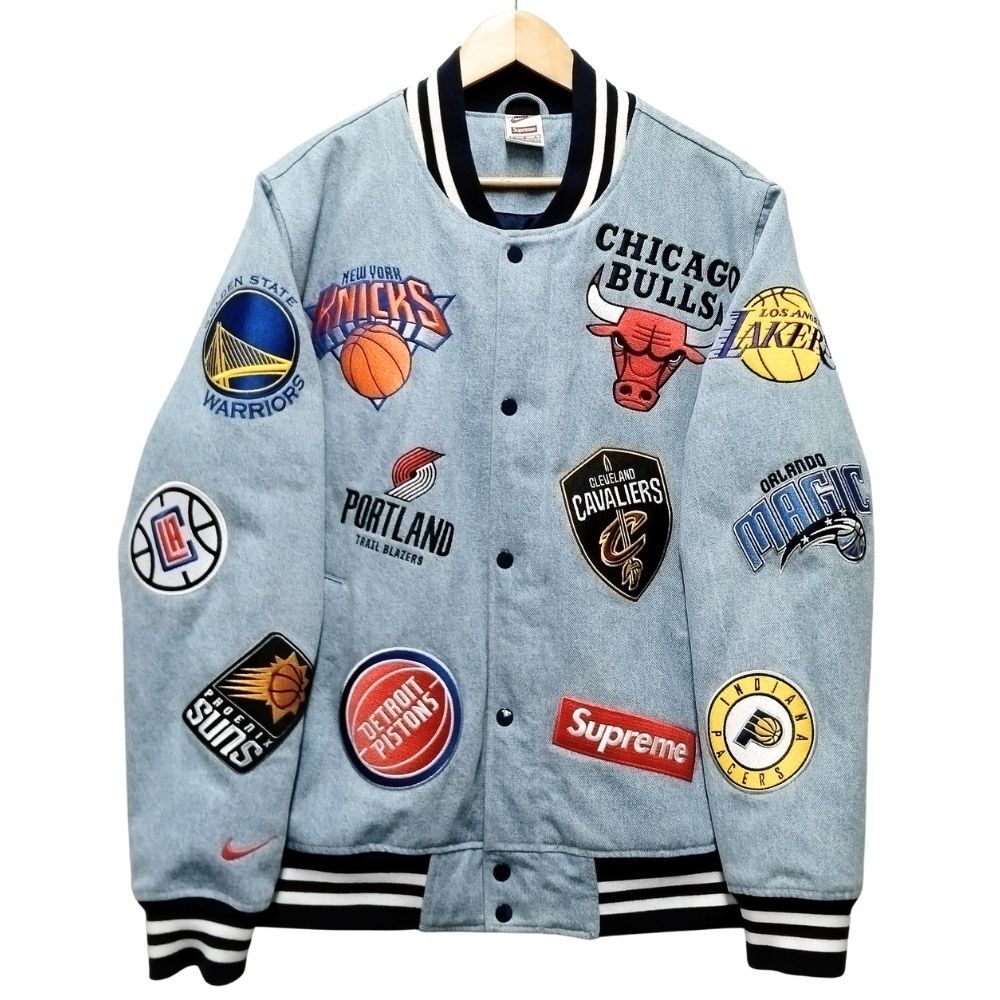 - SUPREME シュプリーム × NIKE NBA Teams Warm Up Jacket 加工 デニム スタジャン ブルー サイズ L 正規品 / 52394