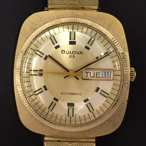 - ブローバ 23 デイデイト 自動巻き オートマチック 腕時計 アンティーク 稼働品 社外ベルト ファッション小物 BULOVA