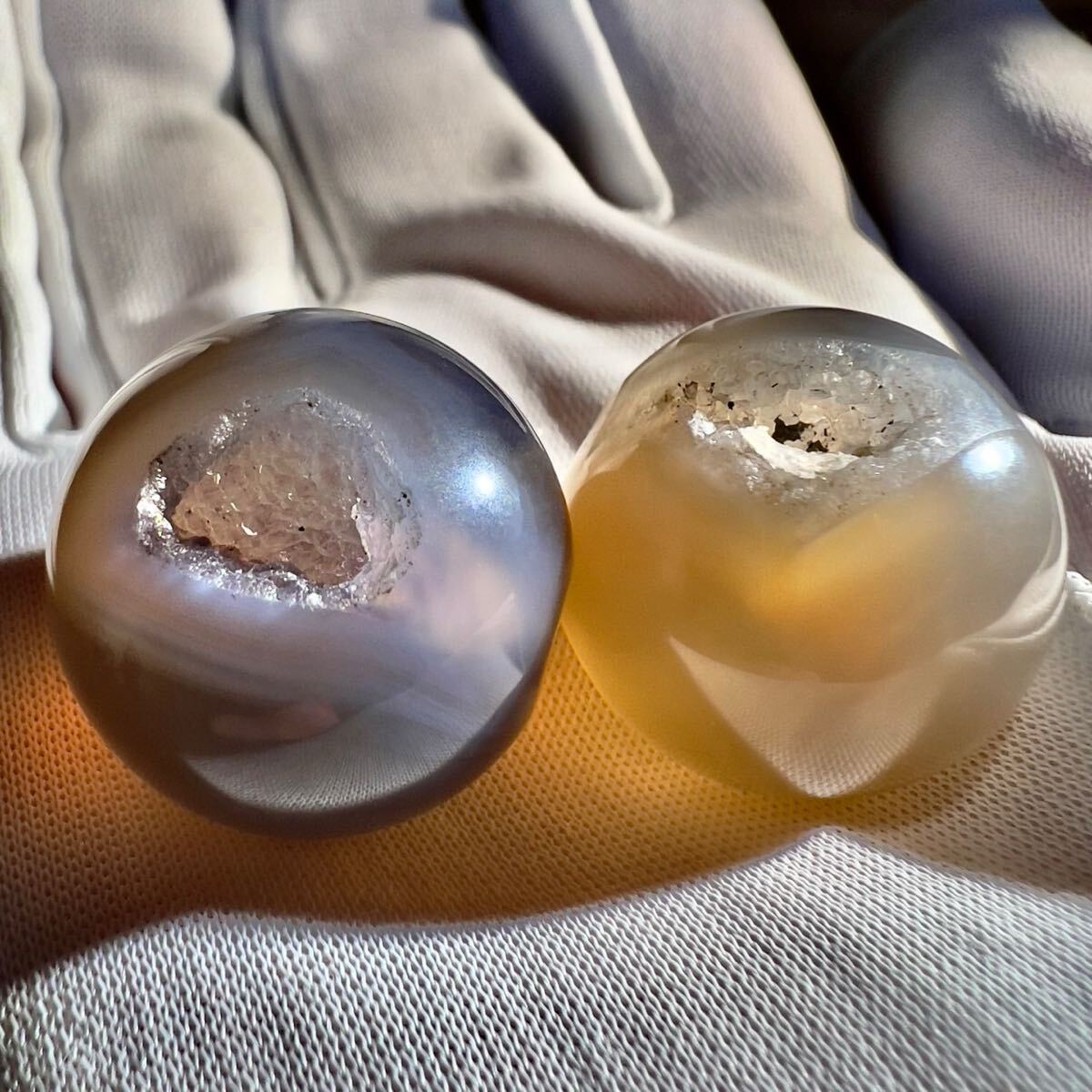 - 2点セット 笑口 ジオード メノウ 瑪瑙 めのう アゲート agate スフィア 丸玉 ブラジル産 天然石 原石 鉱物 鉱物標本 標本 鉱石 石