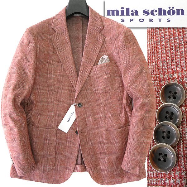 > 新品 5.2万 ミラショーン ウール混 ジャージー アンコン ジャケット 46(M) 赤 【J46414】 秋冬 メンズ ニット グレンチェック ブレザー