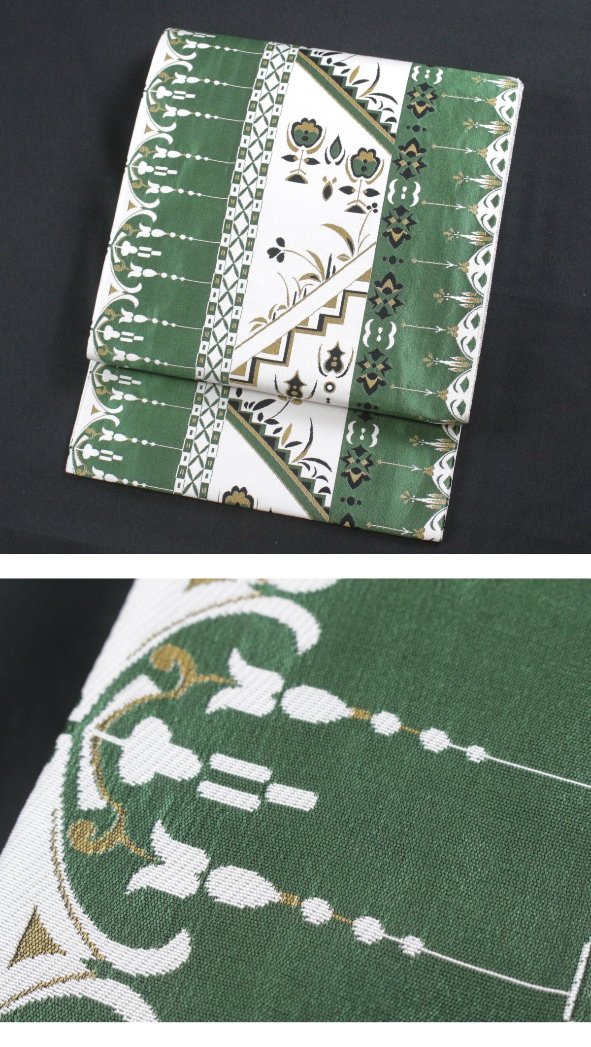 - *未使用*【風通織 コプト裂 正絹袋帯】三松シルクケア加工済 e-2585