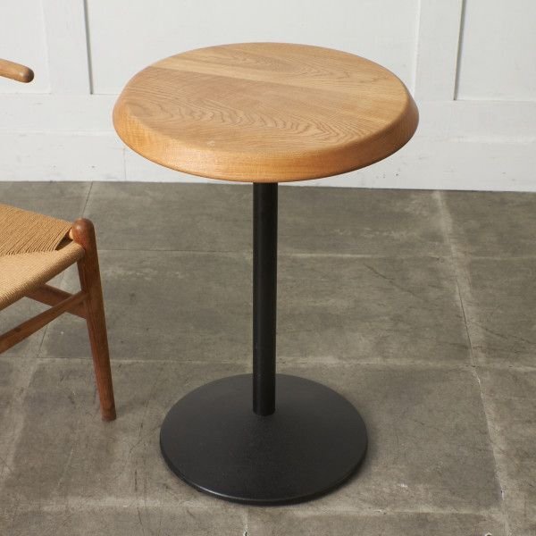 - IZ95327F★作家物 盛永省治 サイドテーブル 無垢材 オーク 鉄脚 カフェテーブル ラウンド シンプル 工房 ナチュラル クラフト 木工 作家