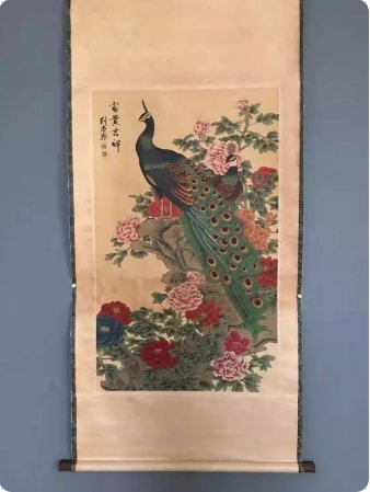 - 中国書画 掛軸 孔雀 牡丹 画仙紙使用 鑑賞 収蔵品 コレクション 中国美術品 巻物 zh223