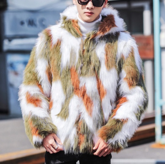 > ファーコート♪新品 メンズ コート フード付き 厚手 高級 毛皮 フェイクファー 紳士 アウター 秋冬 サイズ選択可 赤緑/3XL