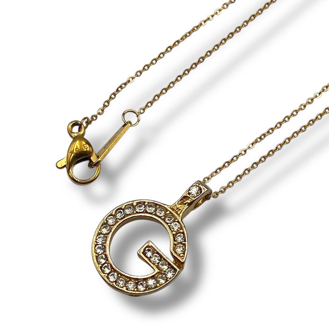 - 美品 GIVENCHY ジバンシー ネックレス Gロゴ ライトストーン ゴールド