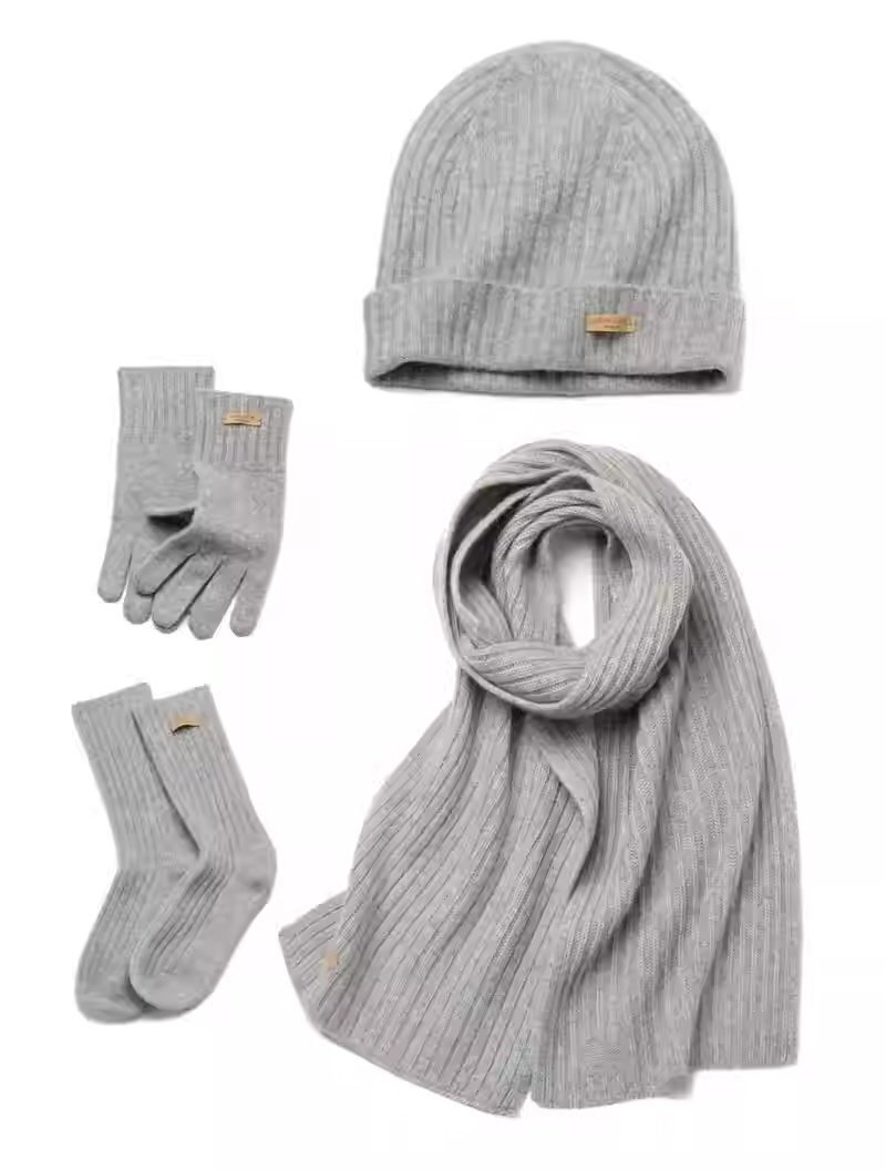 > ロロピアーナ マフラー ベーシックカラーカシミヤニット 冬用防寒 フレンチリブ 100% カシミヤ 4 点セット