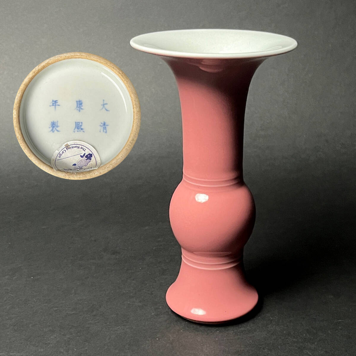 - 唐物 辰砂尊式瓶 大清康煕年製 款 中国美術 古玩 辰砂コレクター蒐集品 B7-79