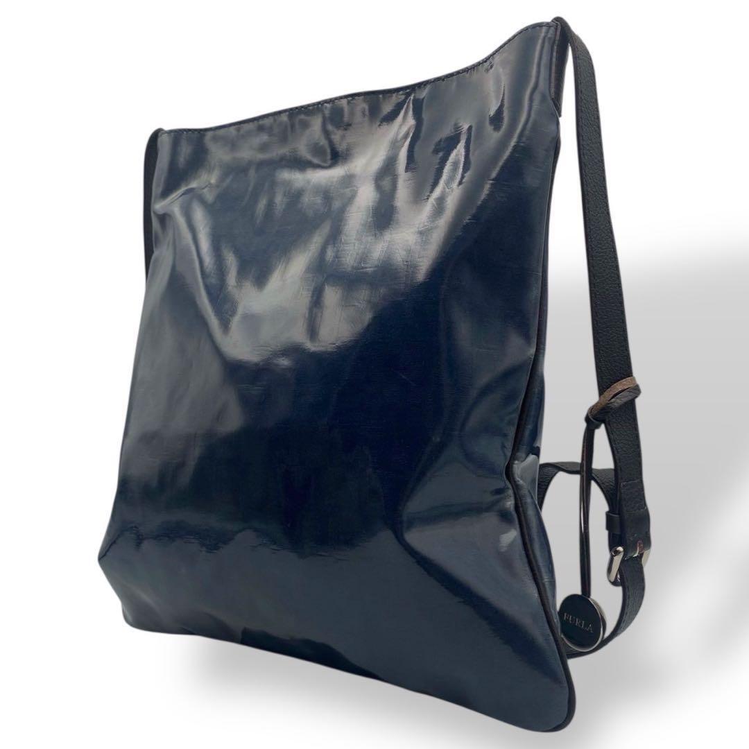 > 美品 FURLA フルラ トートバッグ ショルダーバッグ エナメルレザー 青