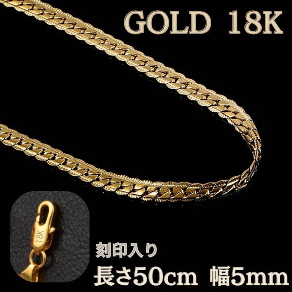 - 18KGF 喜平ネックレス 6面カット 50cm 5mm チェーン メンズ レディース 男女兼用 金張り ゴールド アクセサリー ジュエリー プレゼント