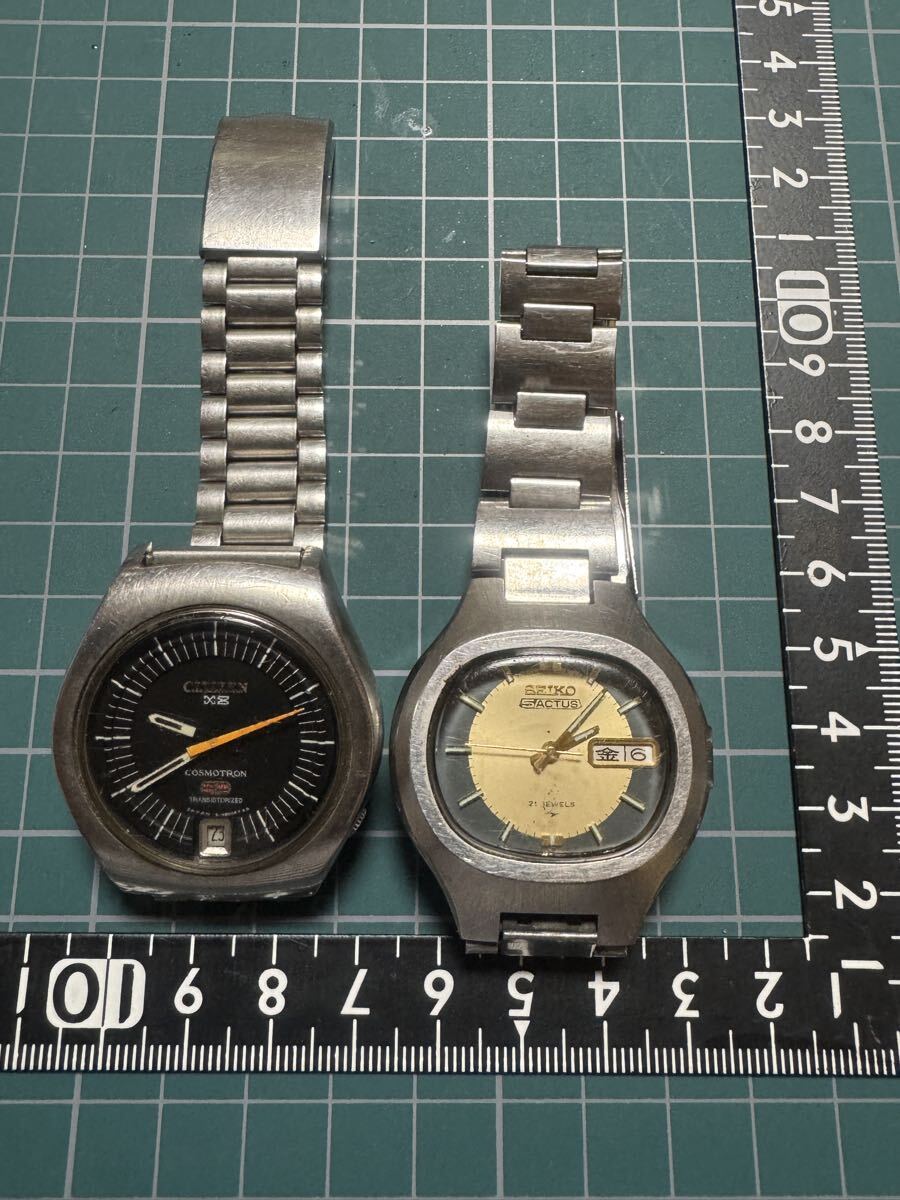 - 希少◆セイコー5アクタスツートンダイヤル/自動巻◆亀戸精工舎1974年製◆ACTUS 刻印ベルト シチズン コスモトロンX8 2個 ジャンク