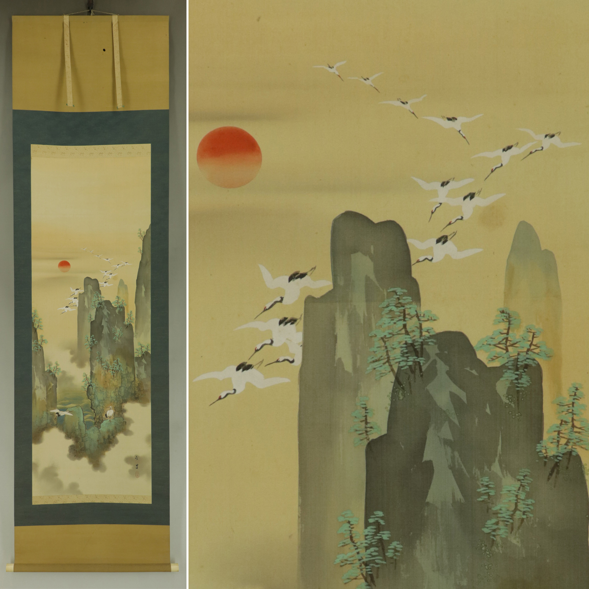 - 【模写】根本雪蓬【蓬莱山図】◆絹本◆合箱◆掛軸 s09056