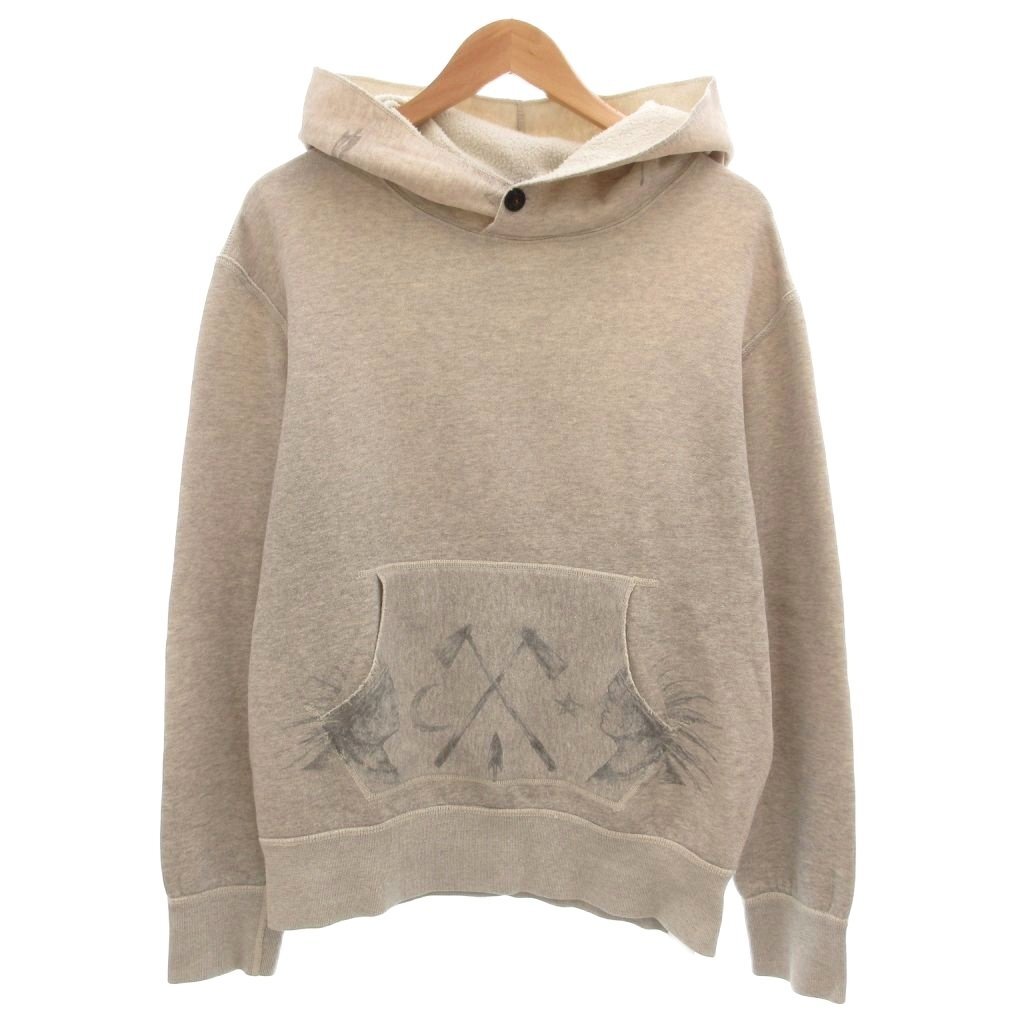 > ポロ バイ ラルフローレン Polo by Ralph Lauren パーカ フーディ プルオーバー ネイティブイラスト 裏起毛 長袖 L グレー /AE メンズ