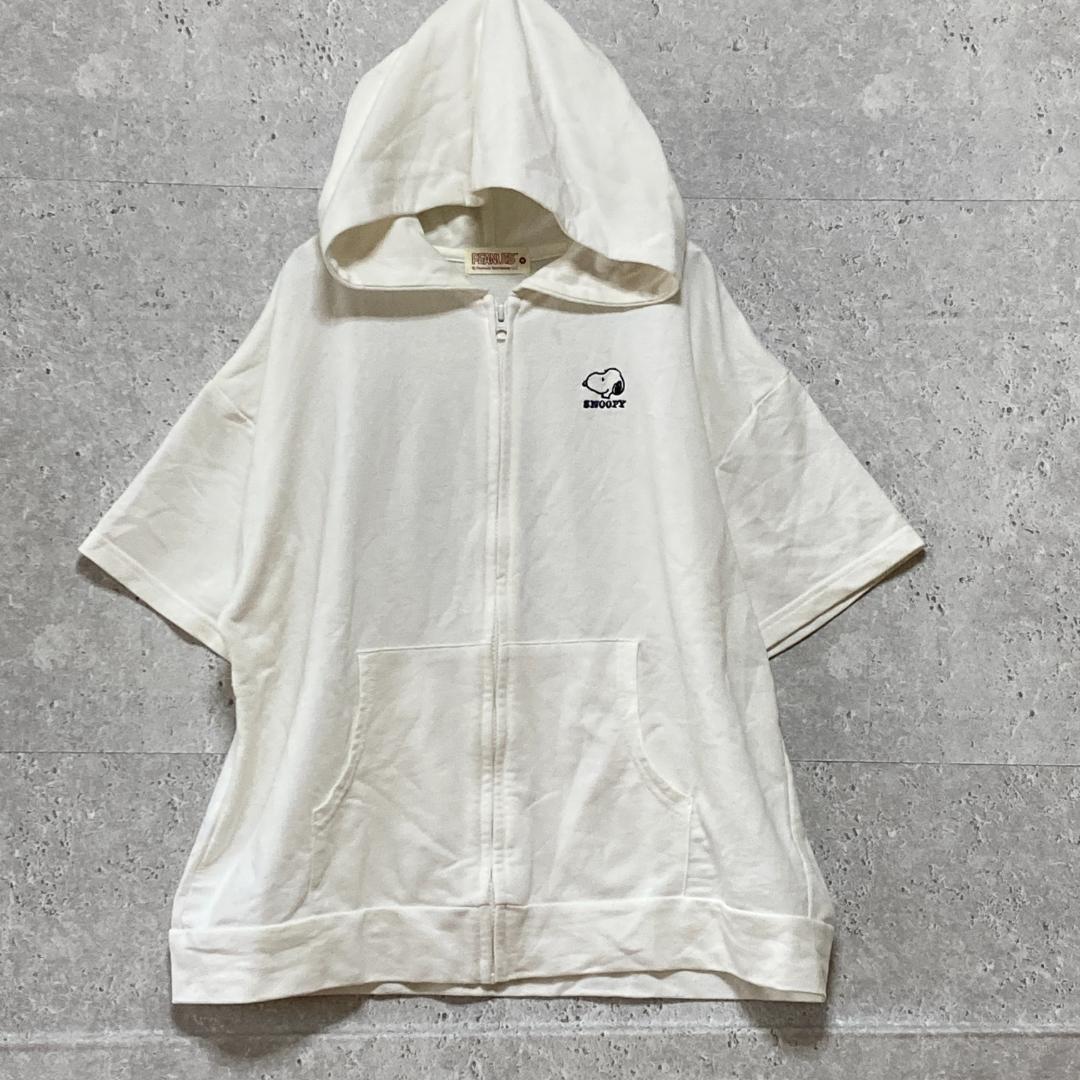- ピーナッツ(M)半袖スヌーピーロゴジップアップパーカー*フード*バックプリント