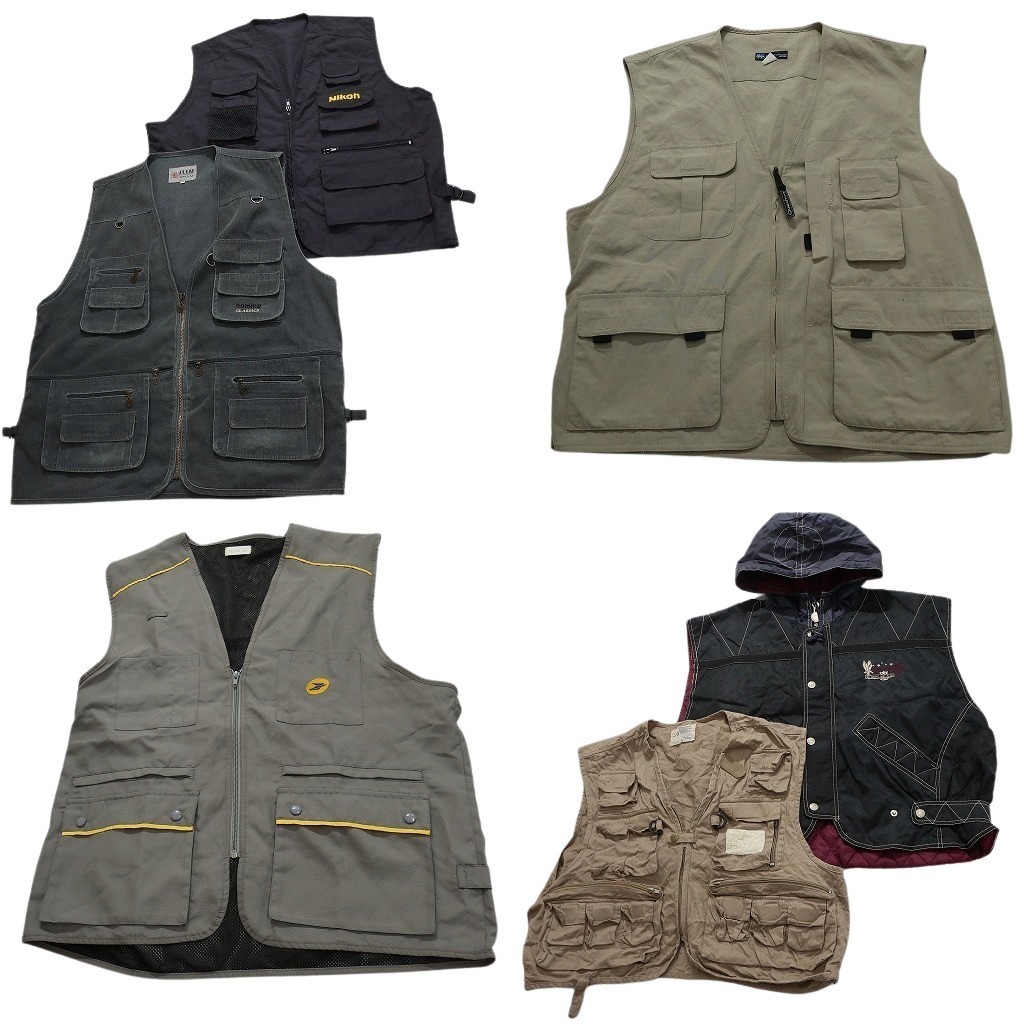 > 古着卸 ライト ベスト ジャケット 6枚セット (メンズ XL ) スナップボタン フィッシング フーディー ニコン 企業 中古 古着 NC2189