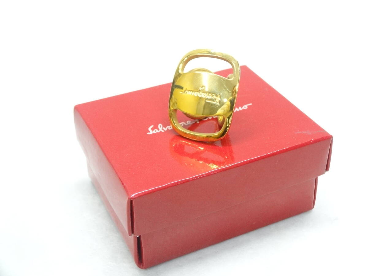 - #44729 サルヴァトーレフェラガモ Salvatore Ferragamo スカーフリング ゴールド スカーフ留め アクセサリー 箱付 中古 現状品
