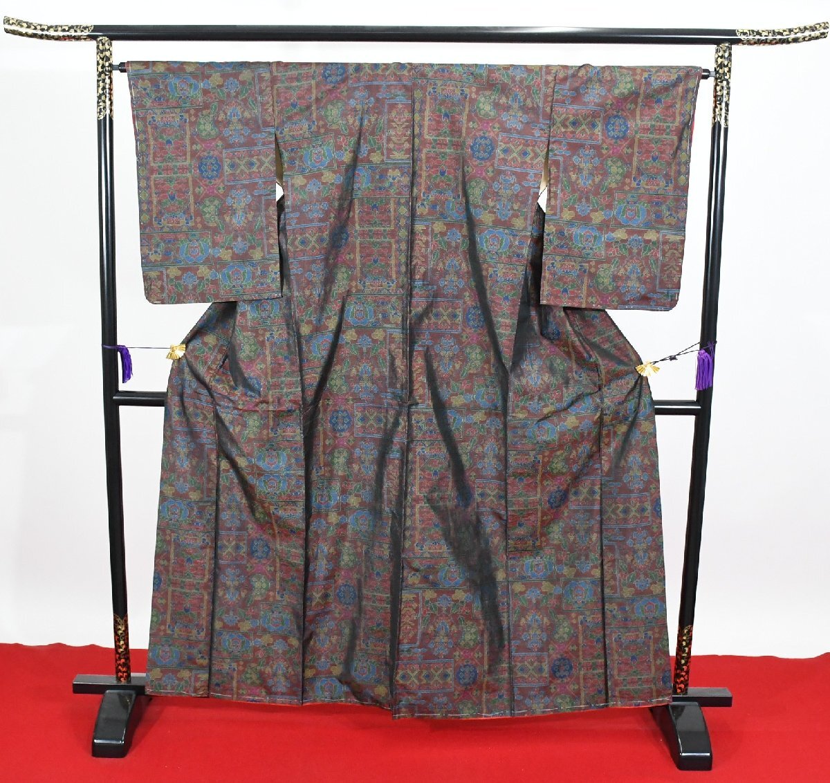 > 大島紬 更紗 正絹 身丈153cm 裄丈65cm ★着物 pb-3687 桜庭呉服店