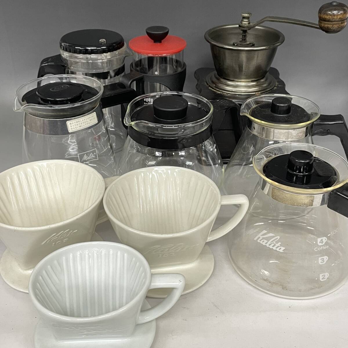 - KF14/41 コーヒー用品 グッズ まとめて 10点 大量 ドリッパー サーバー プレス 他 ガラス 陶器 Karita Hario カリタ ハリオ ジャンク品