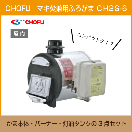 > マキ焚兼用ふろがま 焼却兼用釜 CH2S-6 コンパクトタイプ 本体・バーナー・灯油タンク 3点セット CHOFU 長府製作所