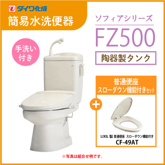 - 簡易水洗便器 簡易水洗トイレ 「ソフィアシリーズ」 FZ500-H00(手洗付)・スローダウン機能付普通便座セット ダイワ化成